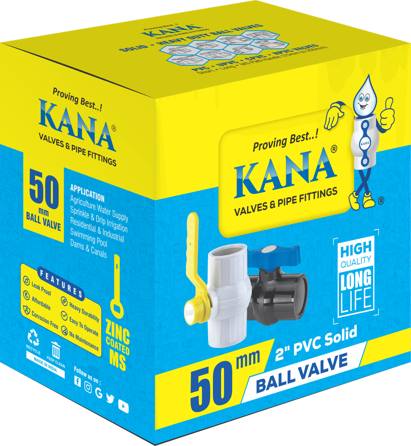 KANA Valves & Pipes Fittings provides durable, corrosion-resistant PVC Ball Valves for smooth flow and easy installation. Perfect for water, irrigation, plumbing, and industrial use, ensuring long-lasting performance.